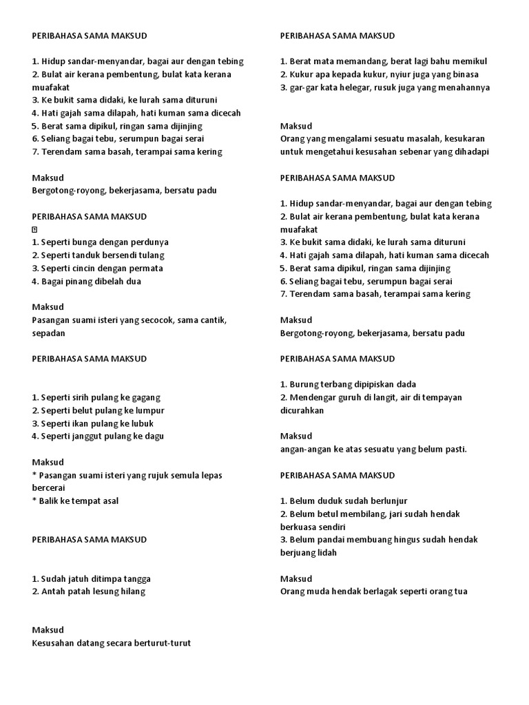 Peribahasa Ke bukit sama didaki ke laut sama direnangi. Persahabatan yang sangat karib. PERIBAHASA SAMA MAKSUD 1.